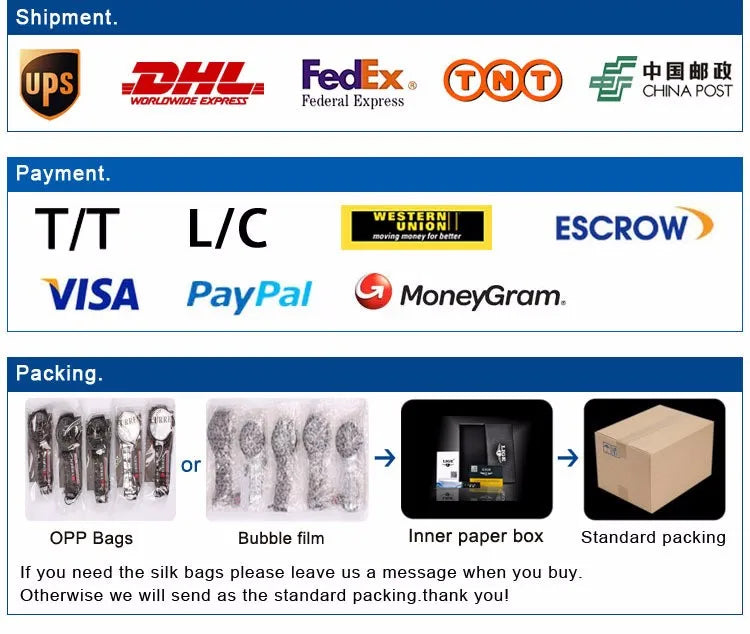 A: For products that are in stock, we can ship it within 3 days after receiving your payment. For custom order, quantity within 2000pcs, production time is 35-40days after all details confirmed.