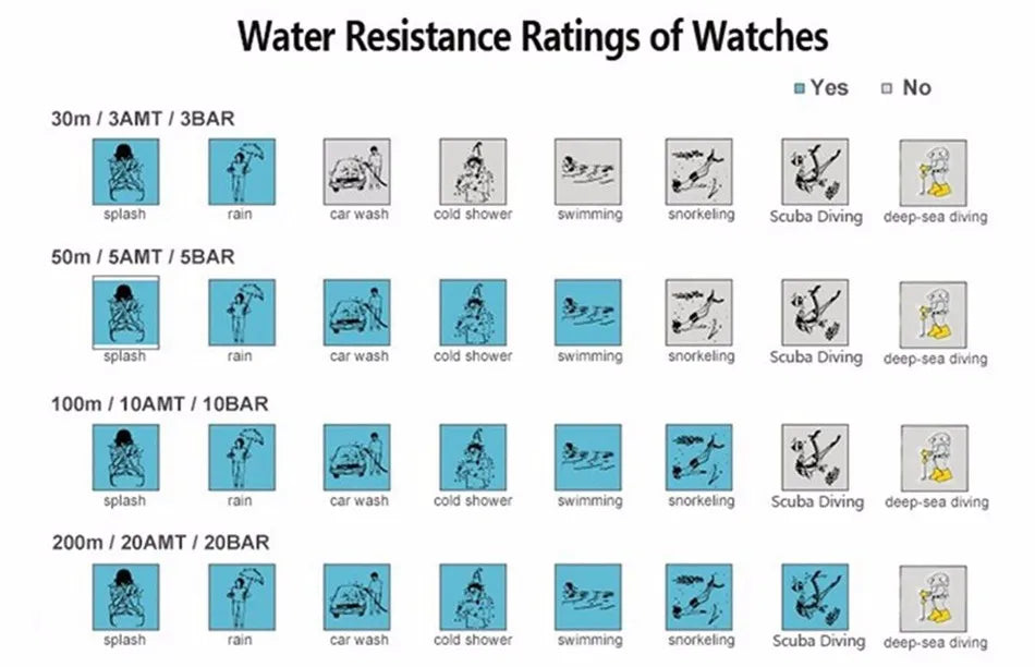 - Resistência à Água (3 BAR) – Adequado para uso diário, chuva e respingos leves.