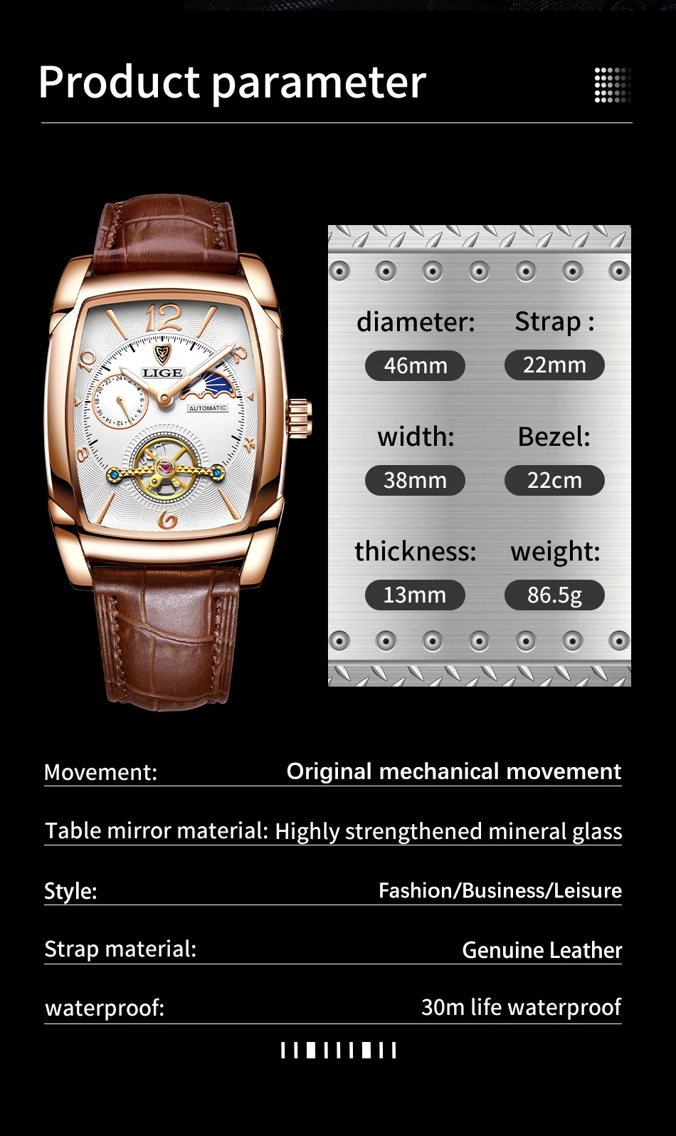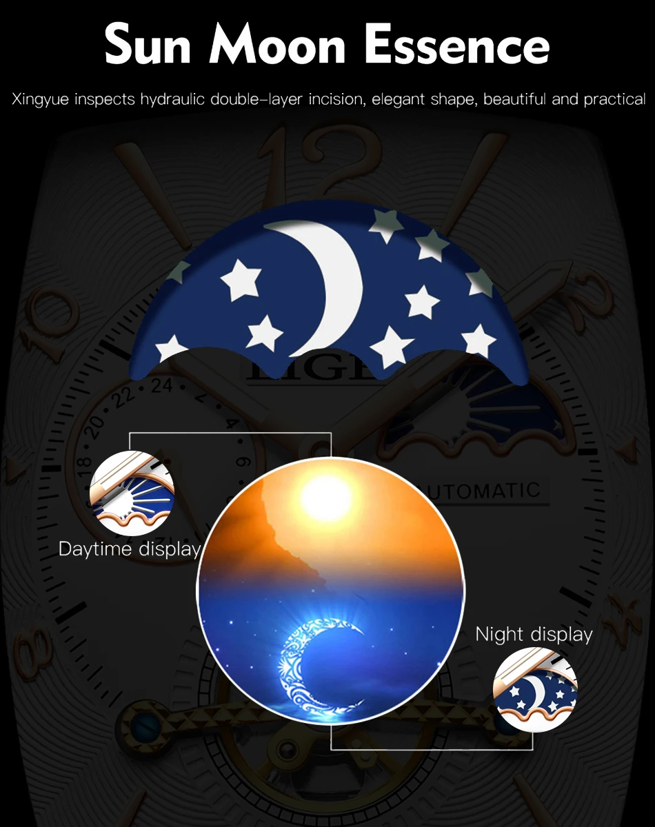O LIGE LG8949 é uma verdadeira obra-prima da relojoaria moderna — combinando mecânica automática de alto desempenho, design tourbillon sofisticado e acabamento luxuoso.