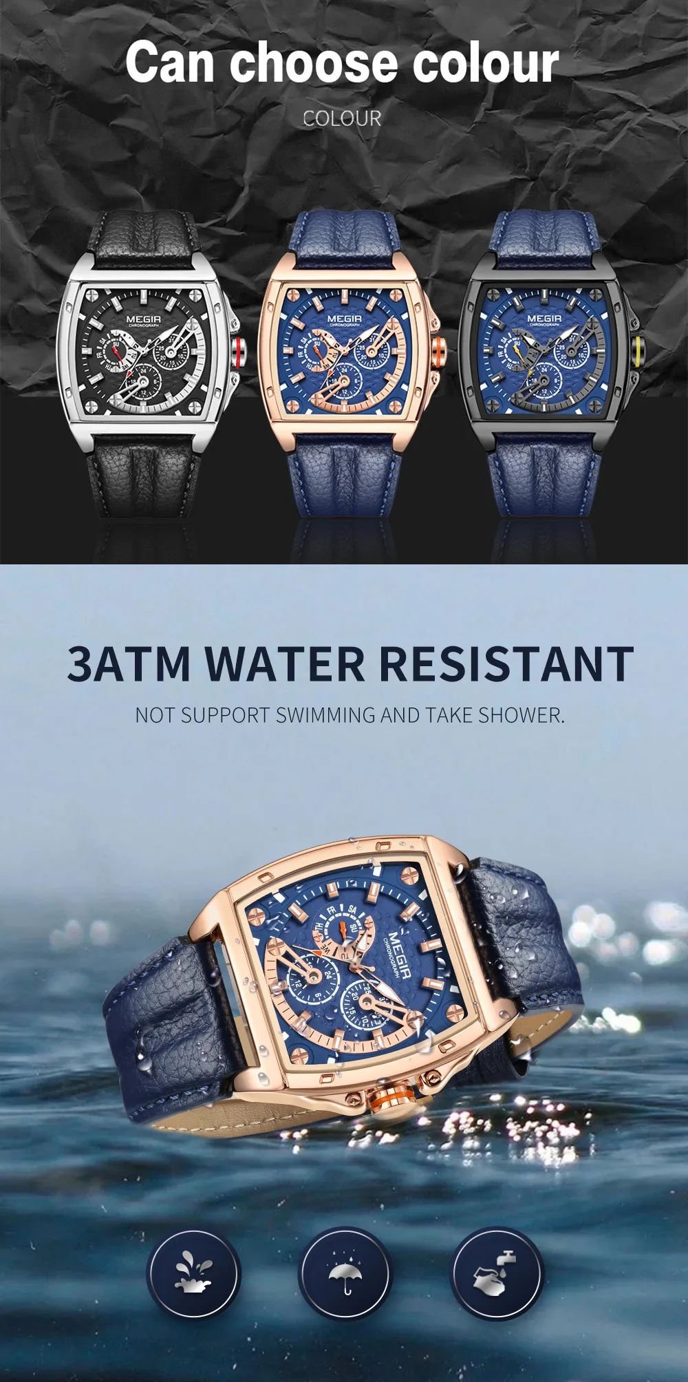 MEGIR™ 2204 – Relógio Masculino de Luxo Esportivo Retangular com Cronógrafo
