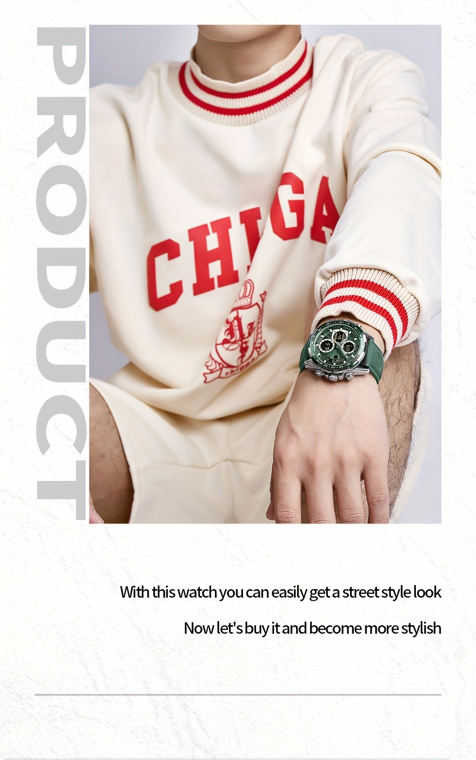 Relógio Masculino NAVIFORCE – Luxo esportivo, couro legítimo, resistente à água, cronógrafo e detalhes em verde.
